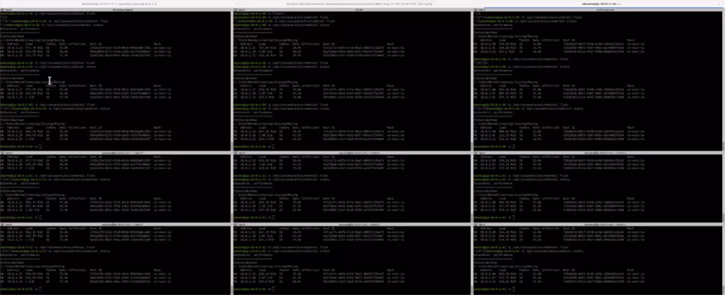 After there was around 1GB in each Cassandra node, I began testing the cluster’s read throughput.