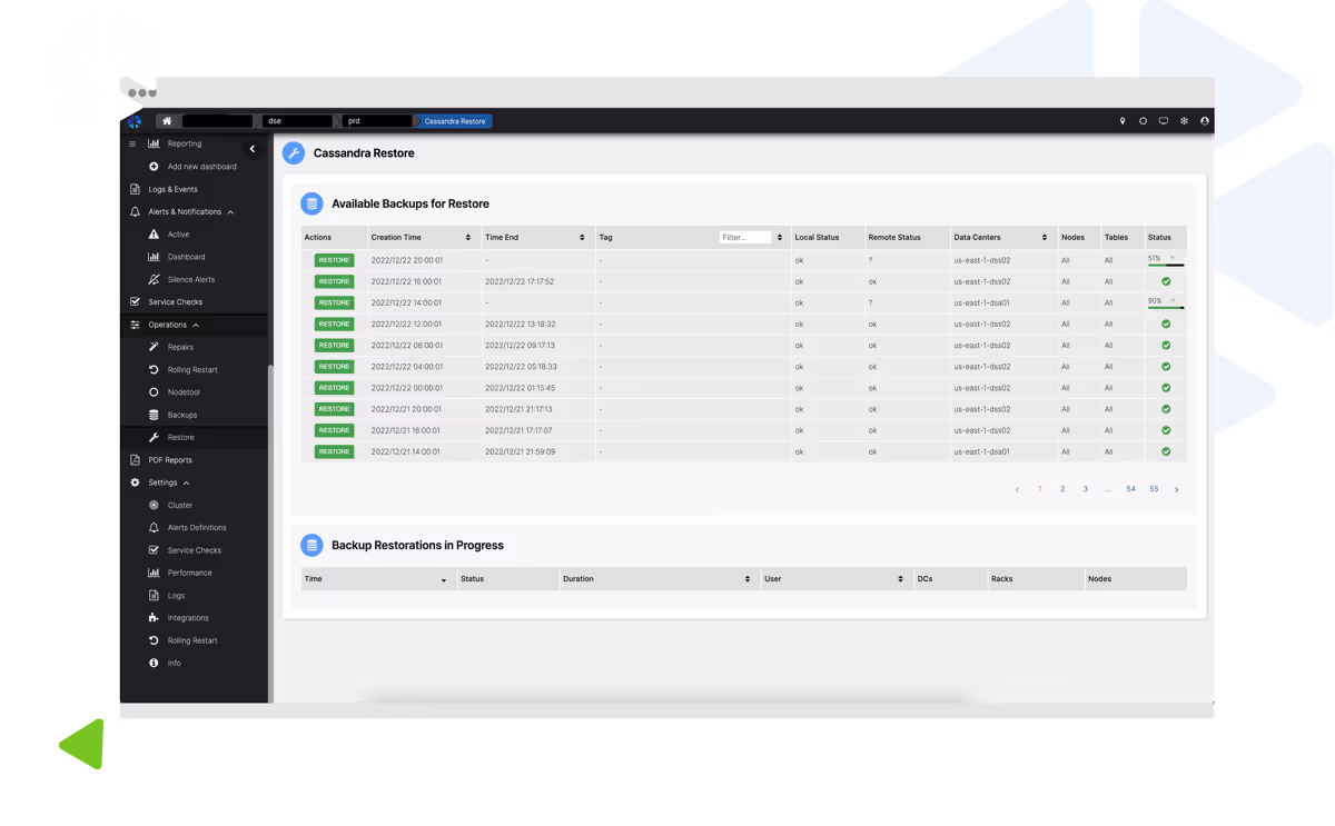 Maintain and backup your Cassandra cluster with ease through enterprise-grade backup and point-in-time restore, adaptive repair and key task scheduling.